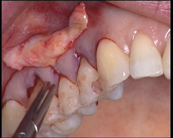 « Voyez : nous n’avons toujours pas une mobilité suffisante du lambeau. Je vais donc dilacérer la zone périostée à la curette de Gracey en essayant d’éviter le piège des balcons osseux. »