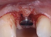 « Il s’agit d’un patient de 30 ans qui a subi un traumatisme de la 21 à l’âge d’environ 10 ans. N’ayant bénéficié d’aucuns soins ni d’un quelconque suivi, il présentait, lors d’une consultation en urgence, une résorption de remplacement totale avec une perte de volume osseux importante en vestibulaire. Aujourd’hui, après l’avulsion et la pose d’un implant, l’objectif thérapeutique est de faciliter l’intégration esthétique de la prothèse par un apport, en regard de la dépression vestibulaire, de tissu conjonctif enfoui prélevé au niveau tubérositaire. »