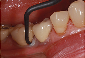 photo 4 : La péri-implantite associe saignement, voire suppuration, au sondage et perte osseuse.