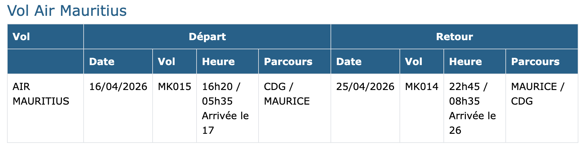 Options de vols, voyages, programme, tarifs et CGV >> en cours de validation